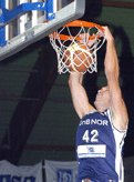 Det ble en festaften med mye publikum. Hele 1023 personer overvar sesongåpningen, noe som vi absolutt er fornøyde med. Kjempebra stemning i hallen og en god del godt og underholdende spill. Best på Storm i går var fire av nyguttan. Dag Christensen spilte helt utrolig i første halvdel av kampen og noterte seg for 21 poeng og 9 returer. I tillegg spilte han meget godt forsvar hele kampen. I tillegg viset også Eric DeYoung (bildet) seg som en meget god spiller. I sin debut ble han toppscorer og noterte han seg for 25 poeng og hele 19 returer. Eric Bell var ikke stort dårligere med sine 23 poeng , 5 steals og glimrende forsvar. Også unggutten Hani Issalhi gjorde en meget god kamp med 13 poeng og 6 returer. Av de lokale guttan så var kaptein Ronny Lange best. Vegard Slettli Hansen kom dessverre tidlig i feiltrøbbel og måtte sette seg på benken i midten av 3. periode. Unggutten Runar Ytrehus fikk sin debut i Storm-drakten og noterte seg for 2 poeng. Vi vil nok se mer og mer fra ham i år. Ellers en grei serieåpning for Storm, og neste helg venter Pirates og Asker Aliens på bortebane.